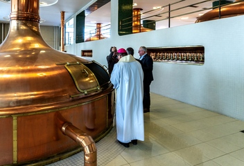 Ve čtvrtek 3. března požehnal biskup Tomáš v Plzeňském Prazdroji suroviny na várku piva pro papeže Františka. Fotil Jiří Strašek.