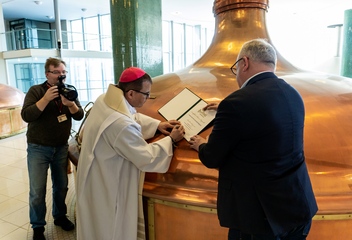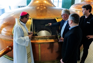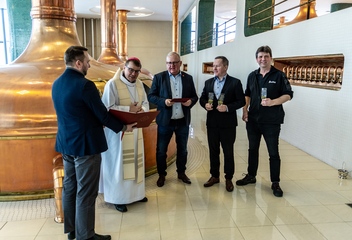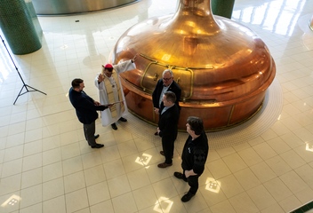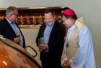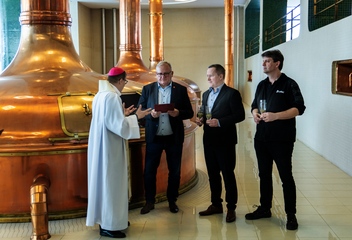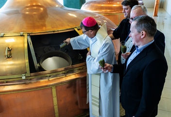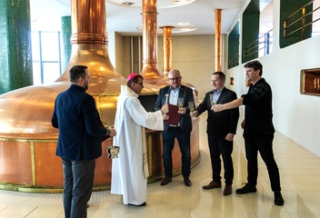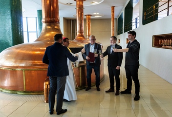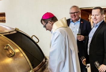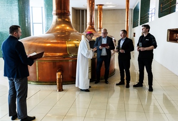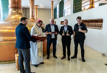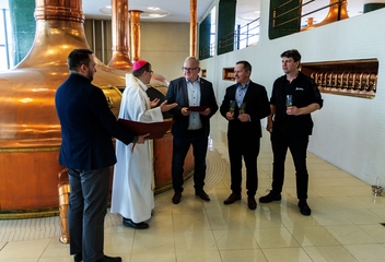 Biskup Tomáš v Plzeňském Prazdroji požehnal suroviny na várku piva pro papeže Františka