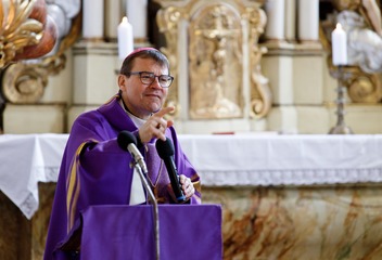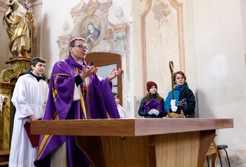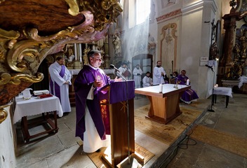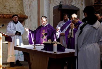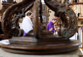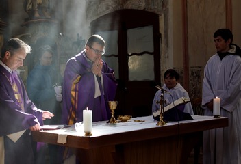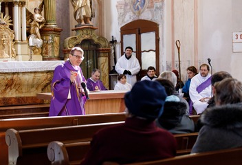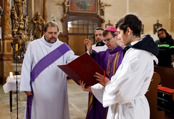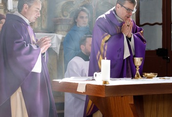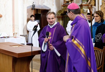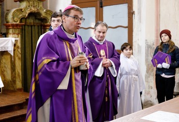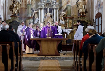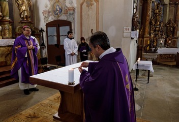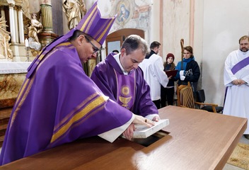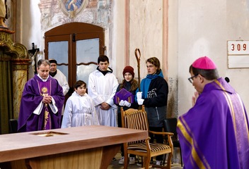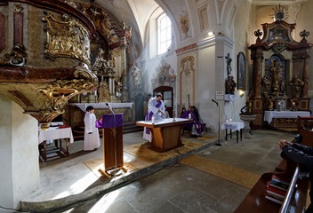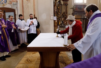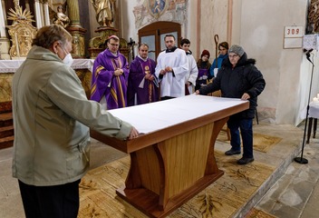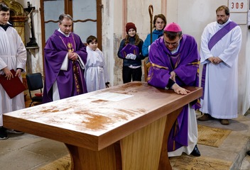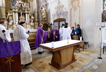 Při mši svaté v kostele sv. Petra a Pavla vysvětil nový oltář plzeňský biskup Tomáš Holub. 3. dubna fotil Václav Beneš.