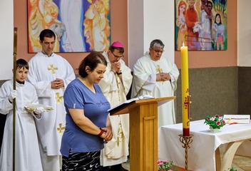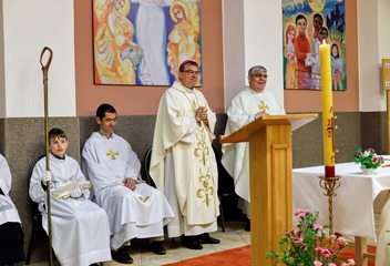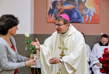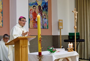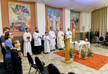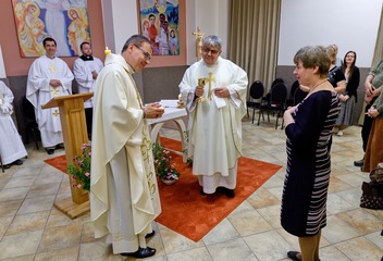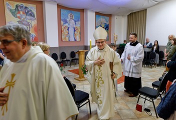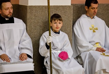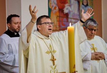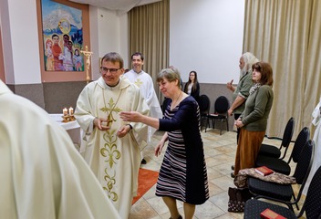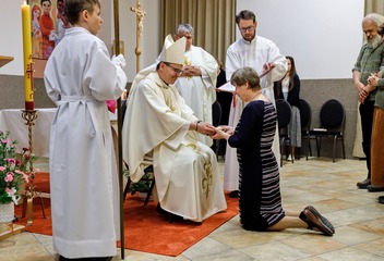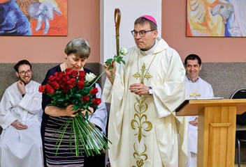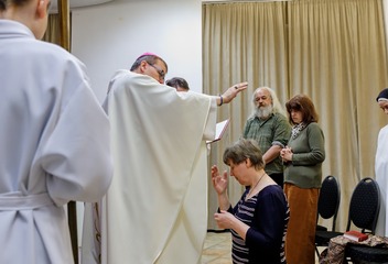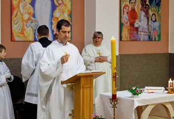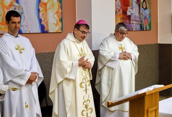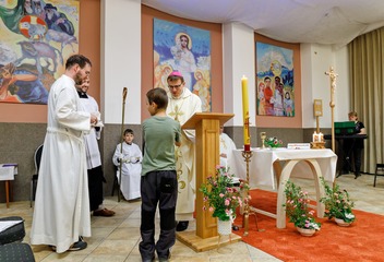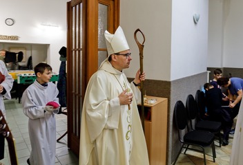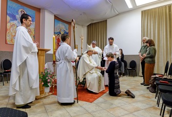 Během mše svaté v kryptě na Křimické udělil biskup Tomáš akolytát.