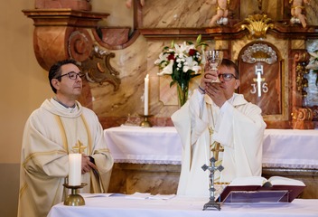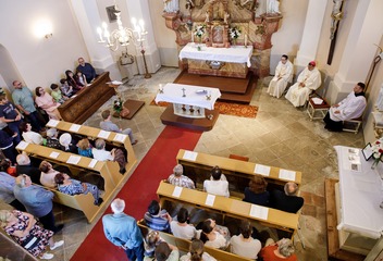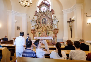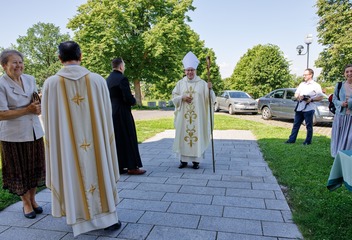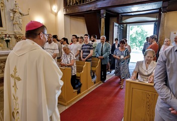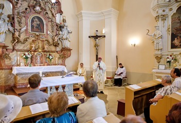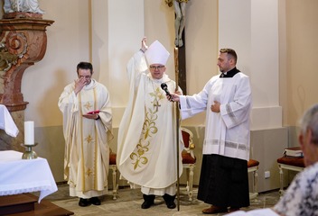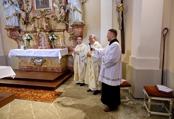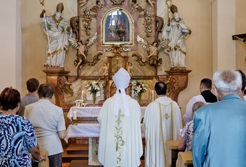 Poutní mši svatou celebroval v neděli 12. června biskup Tomáš v chlumčanské kapli Panny Marie Pomocné. Během bohoslužby posvětil nově zrekonstruovaný oltář sv. Dominika.