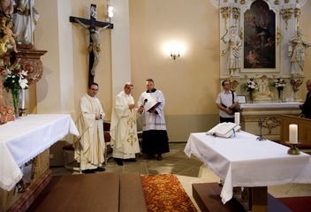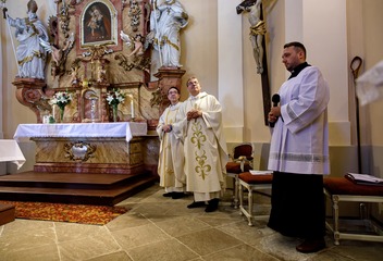 Biskup Tomáš Holub posvětil restaurovaný boční oltář v Chlumčanech