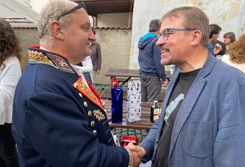 Dlouholetý domažlický kostelník Roman Holub oslavil padesáté narozeniny. Pogratulovat mu přijel i biskup Tomáš Holub.