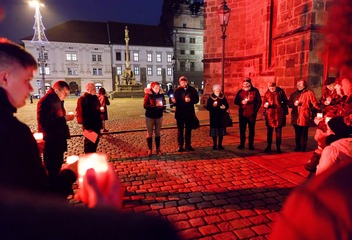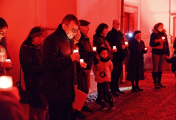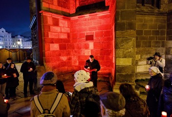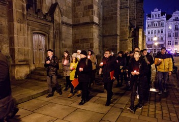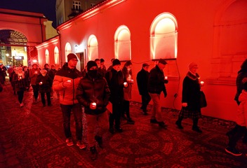 Díky spolupráci s organizací DEPO 2015 jsme letos mohli zahalit symbolicky do červené barvy vchod do katedrály sv. Bartoloměje, pamětní desku kardinála Berana a vchod ke kostelu Nanebevzetí Panny Marie ve Františkánské ulici.