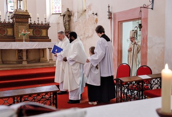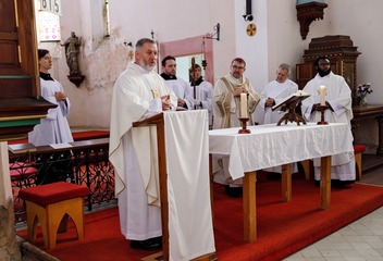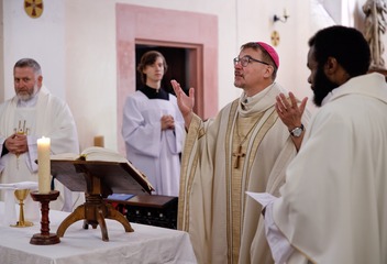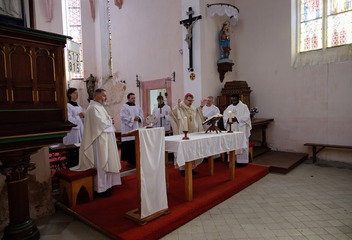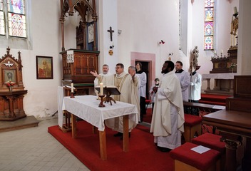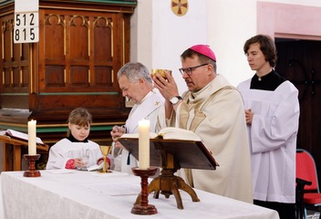 V kostele Nejsvětější Trojice v Mešně na Rokycansku sloužil mši svatou u příležitosti 120. výročí vysvěcení chrámu plzeňský biskup Tomáš Holub.