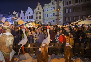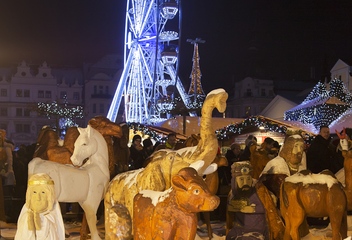 Socha Ježíška už je v betlémě na plzeňském náměstí. Symbolizuje blížící se Vánoce.