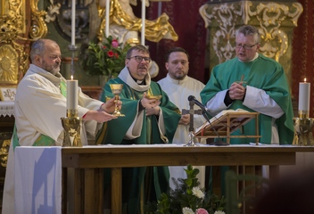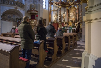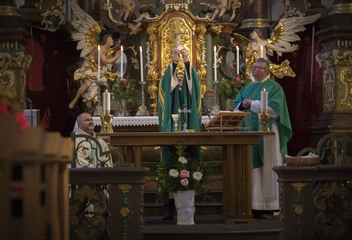 Plzeňský biskup celebroval mši svatou v kostele sv. Mikuláše v Boru u Tachova na závěr pravidelné vizitace farnosti. Fotila Soňa Pikrtová.