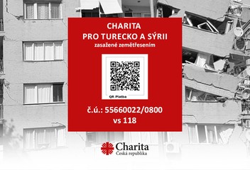 Sbírka Charita pro Turecko a Sýrii zasažené zemětřesením: číslo účtu 55660022/0800, VS 118