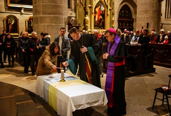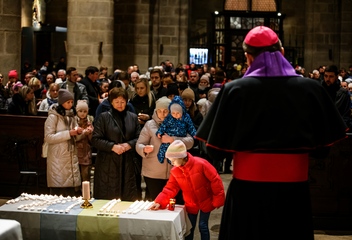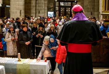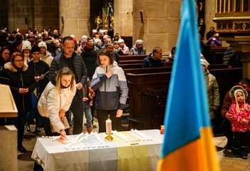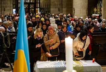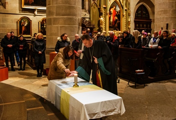 V den výročí ruské agrese na Ukrajinu jsme se v katedrále sv. Bartoloměje v Plzni modlili za zemi, která se již rok brání ve válce. Zazněly prosby v češtině i ukrajinštině, česko-ukrajinské modlitby, Příchozí také zapálili svíčky jako znamení jednoty a sounáležitosti.