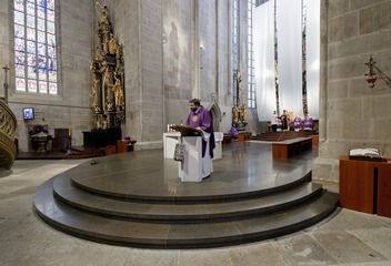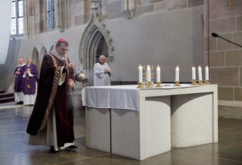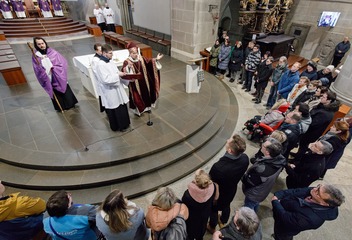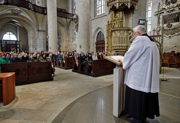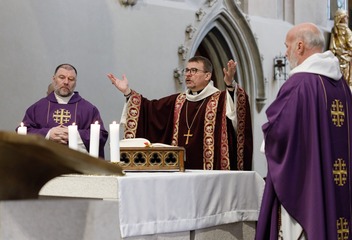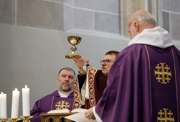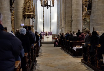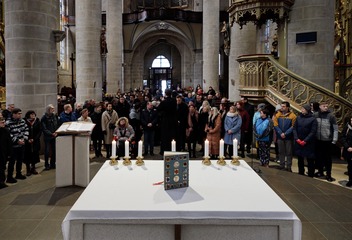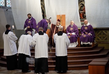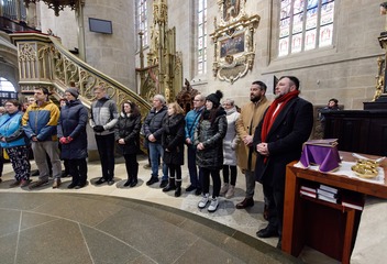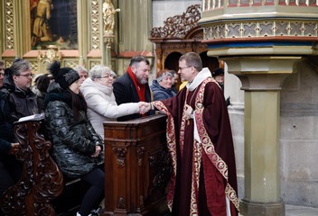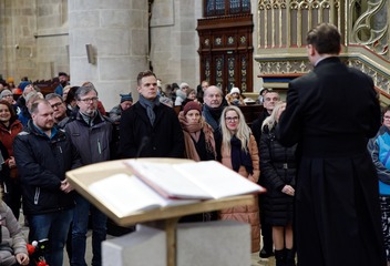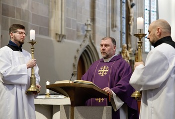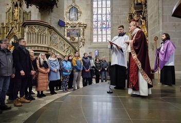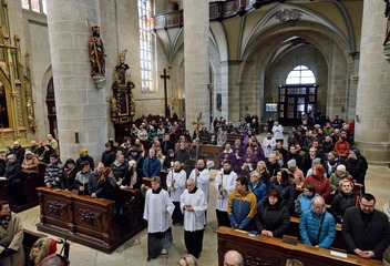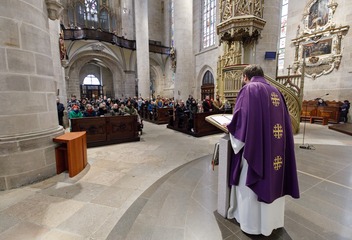 Mši svatou s katechumeny celebroval v plzeňské katedrále biskup Tomáš Holub, který se s čekateli křtu setkal před bohoslužbou v prostorách plzeňského biskupství.