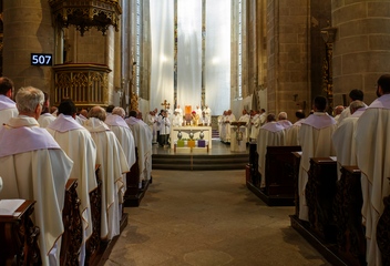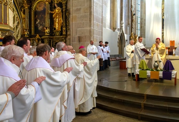 Katedrála se zaplnila kněžími při mši s žehnáním olejů