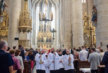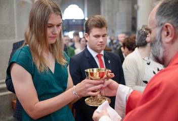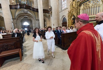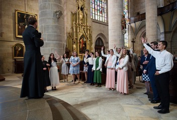 Svátostí biřmování se připodobňujeme apoštolům, kteří o Letnicích přijali slíbeného Ducha Svatého. Nastal den letnic a všichni byli společně pohromadě. Najednou se ozval z nebe hukot, jako když se přižene silný vítr, a naplnil celý dům, kde se zdržovali. A ukázaly se jim jazyky jako z ohně, rozdělily se a nad každým z nich se usadil jeden. Všichni byli naplněni Duchem svatým a začali mluvit cizími jazyky, jak jim Duch vnukal, aby promlouvali. (Sk 2,1-4)