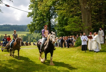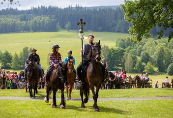 Historie jízdy sv. Linharta sahá až do 15. století. Před druhou světovou válkou se slavnost konala vždy o velikonočním pondělí, po válce a odsunu německého obyvatelstva ale tradice zanikla. Od obnovení tradice v roce 1994 se slavnost koná vždy první sobotu po Slavnosti Těla a Krve Páně, lidově svátku Božího Těla.