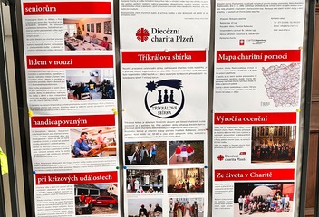 Během oslav spojených s třicátým výročím založení plzeňské diecéze proběhla v průjezdu biskupství prezentace jednotlivých oddělení a organizací zřizovaných Biskupstvím plzeňským. Podívejte se na nástěnky, kterými představili svou činnost.