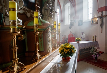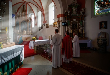 Poutní mši svatou ve farním kostele sv. Václava sloužil ve Švihově P. Tomasz Kowalik. 28. září 2023 fotil Jiří Strašek.