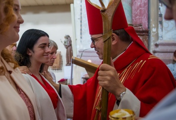 V sobotu 7. října udělil biskup Tomáš svátost biřmování čtyřem ženám a čtyřem mužům. Podívejte se na fotografie z kostela sv. Jana Křtitele ve Skalné.