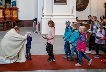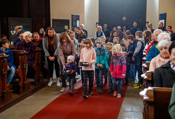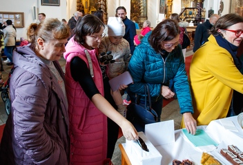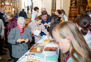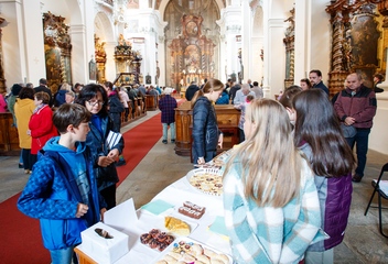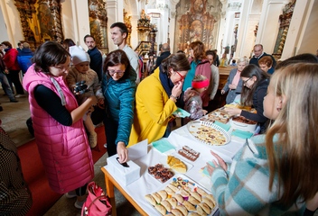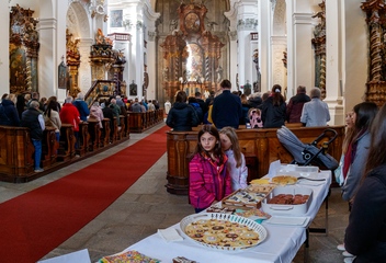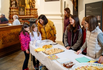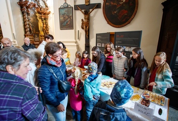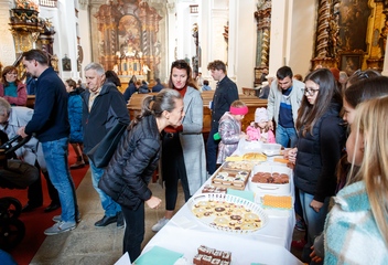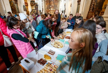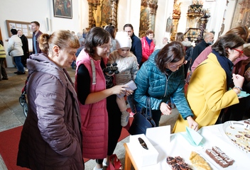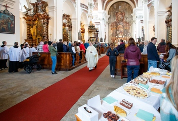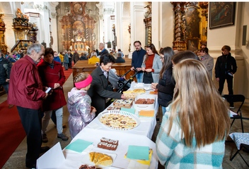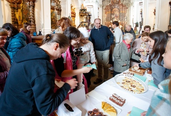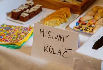 Po nedělní mši svaté 22. října v Jezuitském kostele v Klatovech mohli příchozí přispět na misie zakoupením koláče a jiných pochutin.