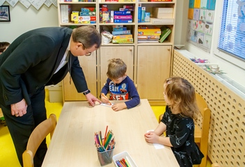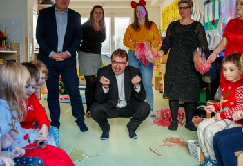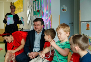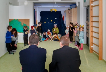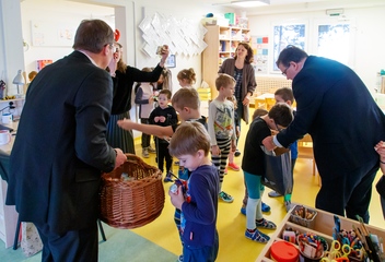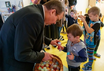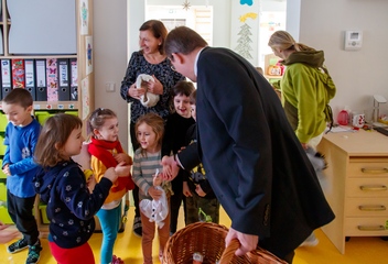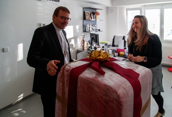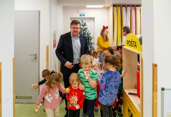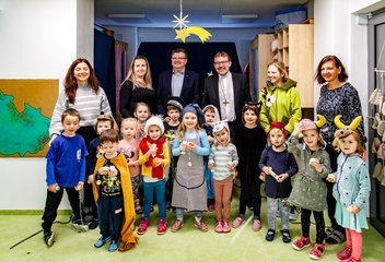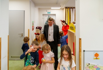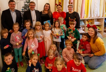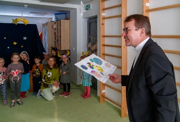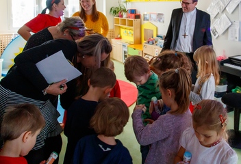 Biskup Tomáš Holub a rektor Miroslav Lávička společně navštívili děti i personál školky kardinála Berana v Plzni. Podívejte se na skvělou atmosféru, která setkání provázela.