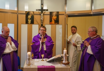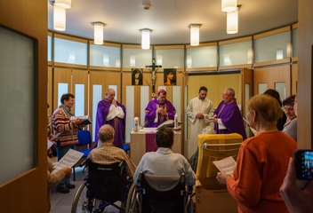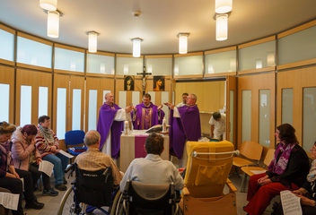 Za doprovodu místního nemocničního kaplana P. Wojciecha Pelowskiho se biskup Tomáš Holub setkal s vedením nemocnice, personálem i pacienty. V nemocniční kapli slavil společně s pacienty eucharistii.