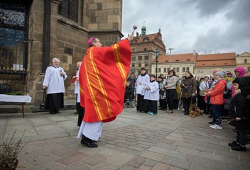 V katedrále sv. Bartoloměje slavil eucharistii na Květnou neděli biskup Tomáš Holub.