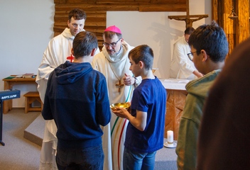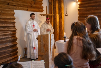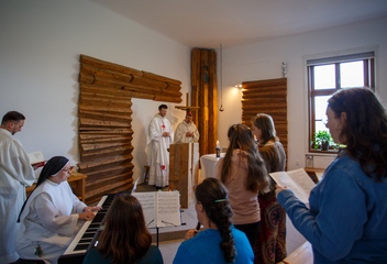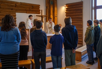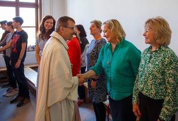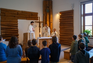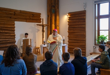 Ve čtvrtek 9. května slavil plzeňský biskup Tomáš Holub, společně se studenty, mši svatou v kapli Církevního gymnázia.