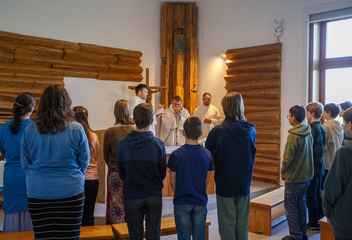 Biskup Tomáš slavil eucharistii na Církevním gymnáziu v Plzni