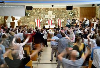 Také v Plzni-Liticích proběhlo na slavnost Seslání Ducha svatého udílení svátosti biřmování. Eucharistii s komunitou Koinonia Jan Křtitel slavil generální vikář Petr Hruška.