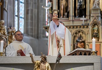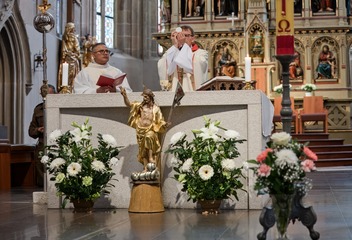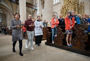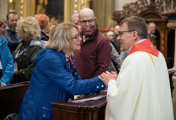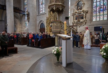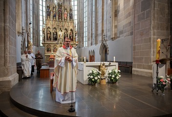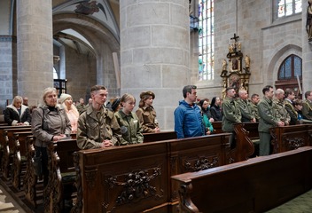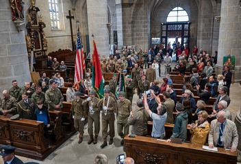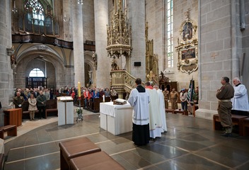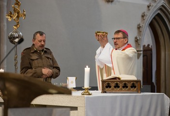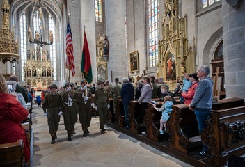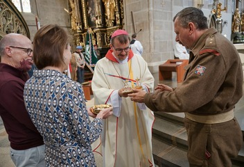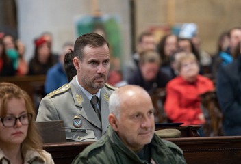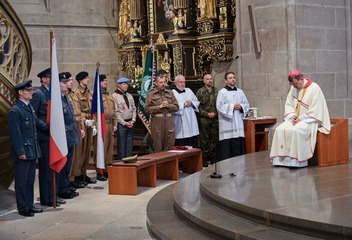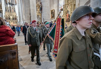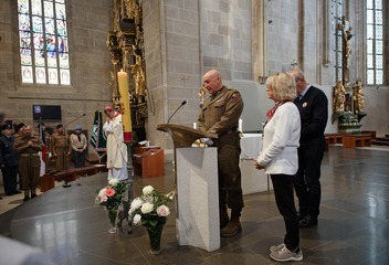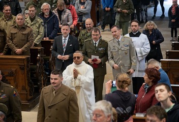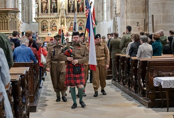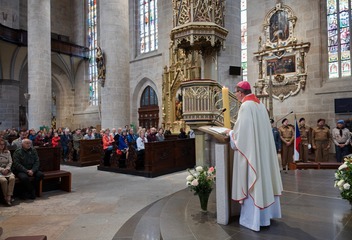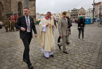 Mši svatou zahájil průvod s prapory za hudebního doprovodu skotského dudáka. Poté se biskup Tomáš Holub společně s náčelníkem generálního štábu Karlem Řehkou a hejtmanem Plzeňského kraje Rudolfem Špotákem modlil za oběti válek a za mír. První čtení zaznělo v angličtině, druhé ve francouzštině a evangelium v češtině. Trojjazyčné byly také přímluvy. Hned po mši svaté se biskup Tomáš Holub, generál Karel Řehka a hejtman Rudolf Špoták připojili k zavodníkům na Běhu pro Paměť národa.