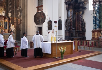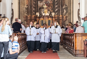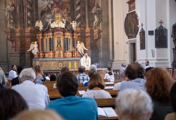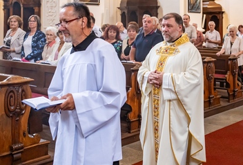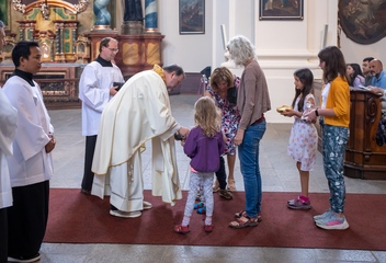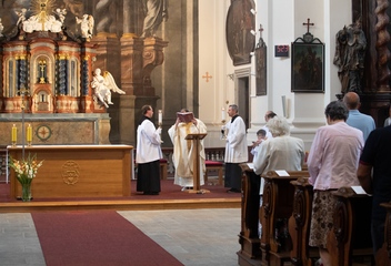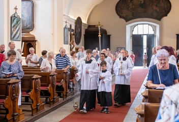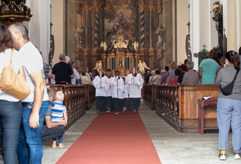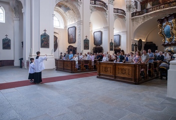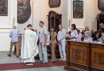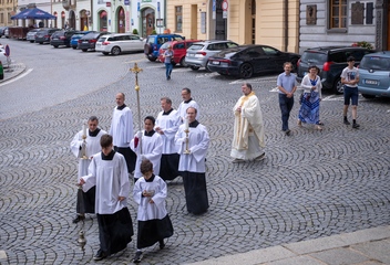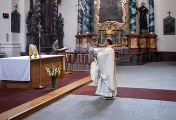 Poutní mši svatou slavil v kostele sv. Ignáce v pondělí 29. července P. Marek Hric. Fotil Jiří Strašek.