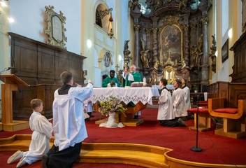 Nigerijský kněz P. Emmanuel Okwudilichukwu Onuma se po pětiletém působení v naší diecézi vrací zpět do své vlasti. Za jeho službu farního vikáře mu poděkovali při nedělní mši svaté farníci v Rokycanech.