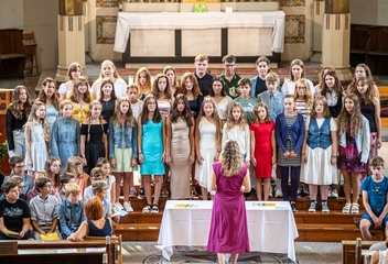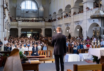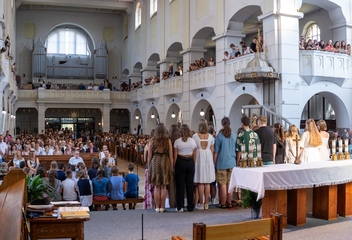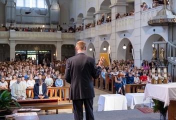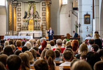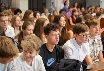 Studenti a studentky Církevního gymnázia v Plzni se sešli v kostele Panny Marie Růžencové na Jiráskově náměstí, aby společně zahájili školní rok 2024/2025. Promluvil k nim ředitel gymnázia Daniel Petříček a plzeňský biskup Tomáš Holub. V rámci setkání proběhlo také tradiční uvítání nových primánů a představení jejich třídních učitelek.