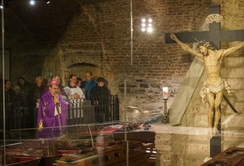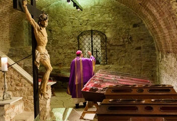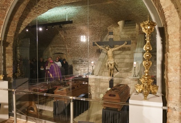 Kostel je vybudován podle typologie jezuitského kostele Il Gesu v Římě. Krypty mají důmyslný větrací systém. Ventilačními otvory ve stěnách je nasáván studený vzduch zvenku a vertikální komíny odvádějí teplý vzduch až pod střechu kostela. Všechny komíny jsou propojeny horizontálními průduchy. Těla zesnulých byla uložena do dubových rakví na vrstvu hoblin a obložena chmelem. Přirozená ventilace v kryptách vedla k vysušení těl.