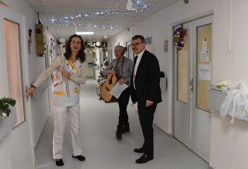 Ani v nemocnici se nezapomíná na kouzlo Vánoc. Na oddělení dlouhodobě nemocných zavítal biskup Tomáš Holub, aby pacientům zpříjemnil adventní čas. Spolu s nemocniční kaplankou, paní Hanou Šimrovou, a panem Janem Esterlem přinesli radost, hudbu a vlídná slova. Společně zahráli a zazpívali koledy, které naplnily chodby nemocnice vánoční atmosférou.