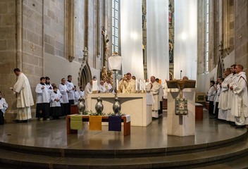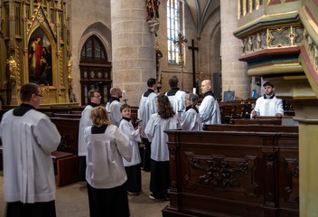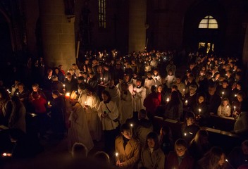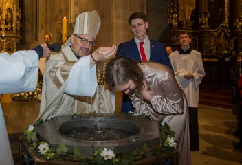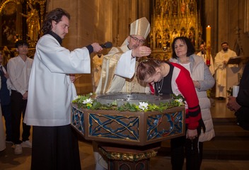 Slavení Svatého týdne začalo na Zelený čtvrtek. Dopoledne proběhla Missa chrismatis – mše se svěcením olejů, které budou během roku používány při udělování svátostí. Večer pak následovala Mše svatá na památku poslední večeře Páně a nechybělo ani tradiční omývání nohou jako připomínka Ježíšova gesta pokory a služby bližním. Velký pátek přinesl atmosféru ticha, rozjímání a zamyšlení nad utrpením Ježíše Krista. Vrcholem těchto dní byla Velikonoční vigilie, při níž byla slavnostně oslavena radost ze zmrtvýchvstání Krista a proběhl také křest katechumenů. Nahlédněte s námi do momentů zachycených na fotografiích z těchto duchovně plných dnů.