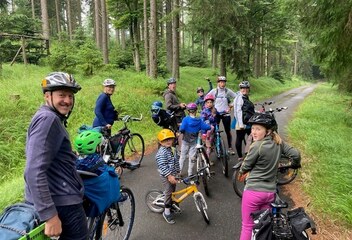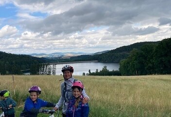 “V týdnu 6.-11.7. 2025 jsme v rámci rodinné dovolené na kolech „Koločava“ i za chladného a deštivého počasí najezdili desítky kilometrů na Šumavě v krásné krajině plné kopečků, potůčků, vodopádů, kapliček a malebných vesniček. Se zázemím na bývalé gotické tvrzi v Březí u Čachrova 15 dospělých a 15 dětí ve rozpětí 2-12 let společně dovádělo, hrálo si, byl čas i na odpočinek a manželé si mohli dopřát společné rande bez dětí. Krásné to bylo moc. Děkujeme.”
