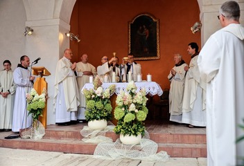 Slavnostní mši svatou celebroval biskup Tomáš Holub za hudebního doprovodu sboru Cantabundus ze Kbel.