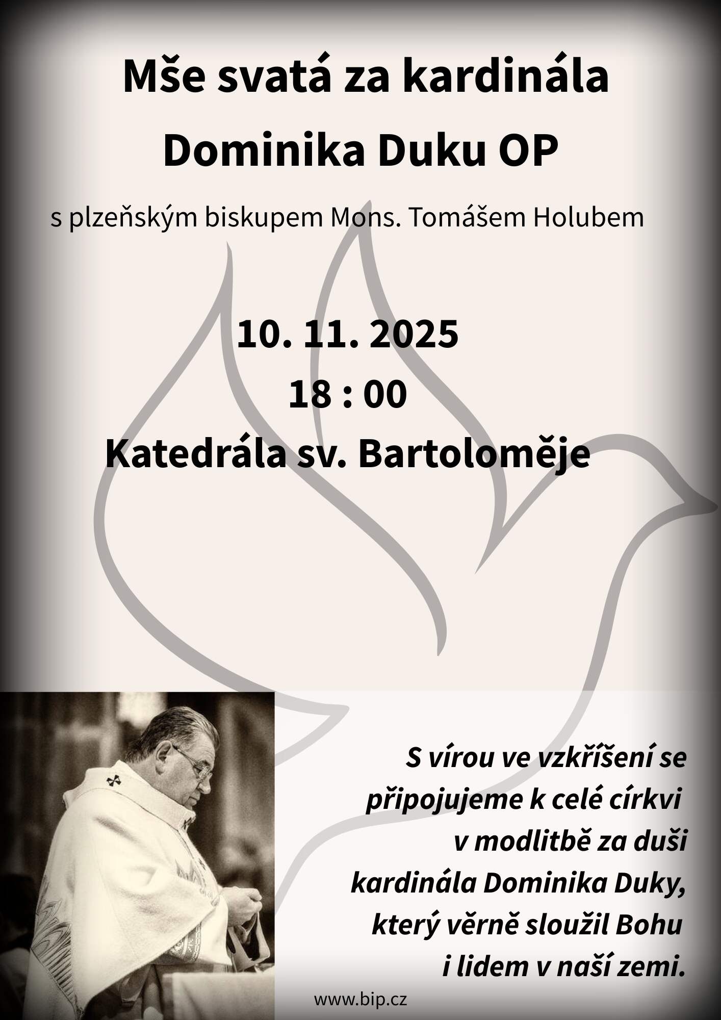 Informace o bohoslužbě za kardinála Dominika Duku zveřejníme na webu a sociálních sítích Diecéze plzeňské.