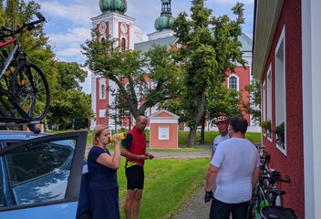 Nejdříve jsme jeli do Ostrova, kde to zná Marek [je administrátorem farnosti Ostrov], a pak do Teplé. Tam jsme prosili patrona naší diecéze, blahoslaveného Hroznatu. Pokračovali jsme do Klatov k Panně Marii Klatovské, odkud jsme jeli do Dobré Vody u Českých Budějovic, kde to neznal nikdo z nás. Další zastávkou bylo Kostelní Vydří, přes Vysočinu jsme pak dojeli do Sloupu. (Tam to bylo moc hezké. Byl jsem tam kdysi jako postulant, ale jen autem.) Dalším naším cílem byl nám všem známý Svatý Hostýn. Pokračovali jsme do Cvilína. Tam jsem nikdy nebyl, takže to pro mě bylo velice krásné překvapení. Potom jsme jeli do Králíků (na kole jsem tam byl poprvé). V Králíkách nás čekal den zaslouženého odpočinku. Protože už nás dohnala únava, těch převýšení bylo opravdu moc, přemýšleli jsme, co dál. Nakonec jsme decentně upravili trasu – vynechali jsme Broumov a skončili v Náchodě. To jsme udělali opravdu dobře. Z Náchoda jsme jeli do Bozkova a pak na nově zrekonstruované poutní místo do Horní Police. Další den nás čekala cesta z Horní Police do Květnova, to byla dvě místa, na kterých jsme všichni byli poprvé. V Květnově jsme měli přespat v kostele, ale zrovna tam netekla voda, takže jsme ještě přejeli do Jirkova, kde nás moc hezky přijal místní pan farář. Jirkovem jsme stejně měli projíždět, bylo to na cestě. Když jsme se vrátili do Plzně, následující den jsme pak zakončili naši cyklopouť slavnostní mší svatou a svěřili jsme pod ochranu Panny Marie celou Českou republiku.
