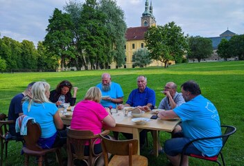 Jezdili jsme odpočinkovým tempem, nezávodili jsme. Když jsme přijeli na místo, byl každý den největším zdrojem vitamínů B-komplex v tekutém stavu, tedy pivečko. Piva jsme vypili docela dost. Po večeři jsme se vždycky scházeli u společné modlitby a pak jsme šli rychle spát. V Králíkách jsme měli volný den. A protože pršelo, nikam jsme nechodili, opravdu jsme odpočívali a regenerovali. Každý den jsme společně slavili mši svatou na prosby a úmysly, které jsme s sebou vezli, a modlili jsme se za ně, společně jsme se modlili, proběhly také krásné duchovní rozhovory. Zašli jsme i na pivko, zdroj bohatý na vitamíny a ionty. Odpočívali jsme různě, bylo to fajn.