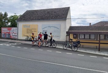 Marek měl dvakrát problém s kolem, takže jsme museli hledat servis. Terén byl všelijaký; jeli jsme nejen po asfaltu, ale také po šotolině, a dokonce i po lesních cestách.