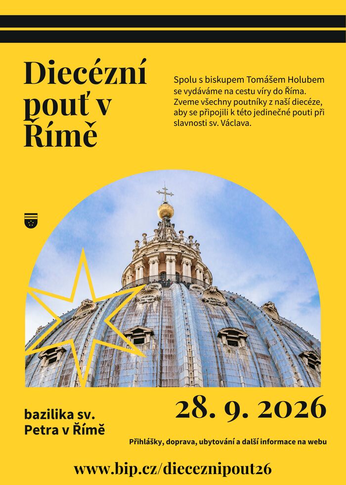 Zveme vás na zájezd spojený s diecézní poutí, kdy se spolu s biskupem Tomášem Holubem vydáme do města Říma oslavit svátek sv. Václava v bazilice sv. Petra ve Vatikánu v pondělí 28. září 2026.