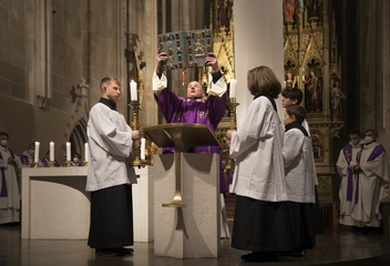 Kéž pro půst, který zaostří naše zraky, jsme těmi, kteří mohou být oporou druhým a kteří i v situaci, která je lidsky velmi náročná, věří, že našli pevný bod, který dává možnost žít v pokoji srdce i vztahů. Kéž půst, do kterého vstupujeme, je pro nás cestou, na kterou se skutečně vydáme, jak zní motto naší diecéze pro tento tak zvláštní rok. Kéž se vydáme na cestu orientováni Bohem, který miluje člověka. Amen.